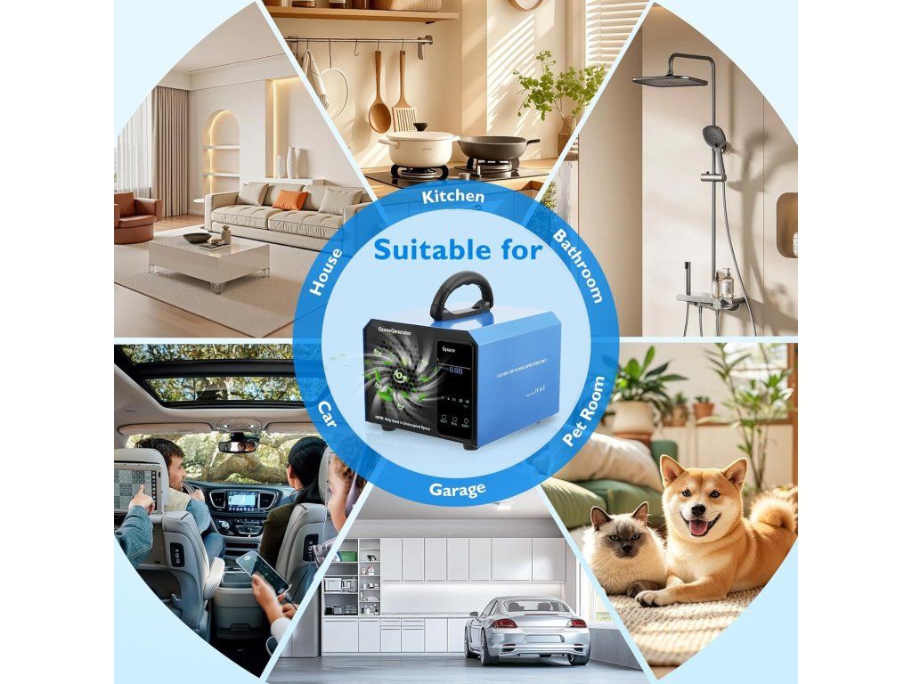 Vysoce výkonný průmyslový ozónový generátor Ozone Generator 60mg Space je vhodný pro náročné použití ve velkých prostorech jako jsou autodílny, hotelnictví, v sanitárních zařízeních, dopravních prostředcích, v prodejnách potravin, v ordinacích a čekárnách a odpadních prostorách atd.