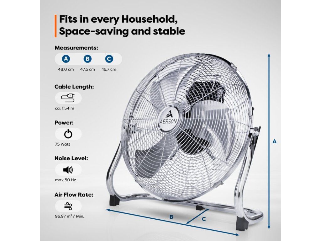 Podlahový ventilátor AERSON byl navržen pro maximální chladicí výkon a vysoký průtok vzduchu.